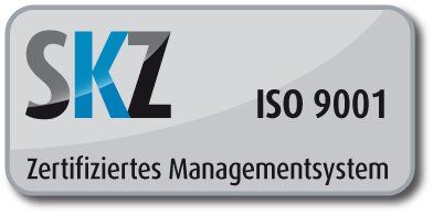 Wir sind zertifiziert nach DIN EN ISO 9001 durch die SKZ-Cert GmbH am Süddeutschen Kunststoffzentrum, Würzburg.